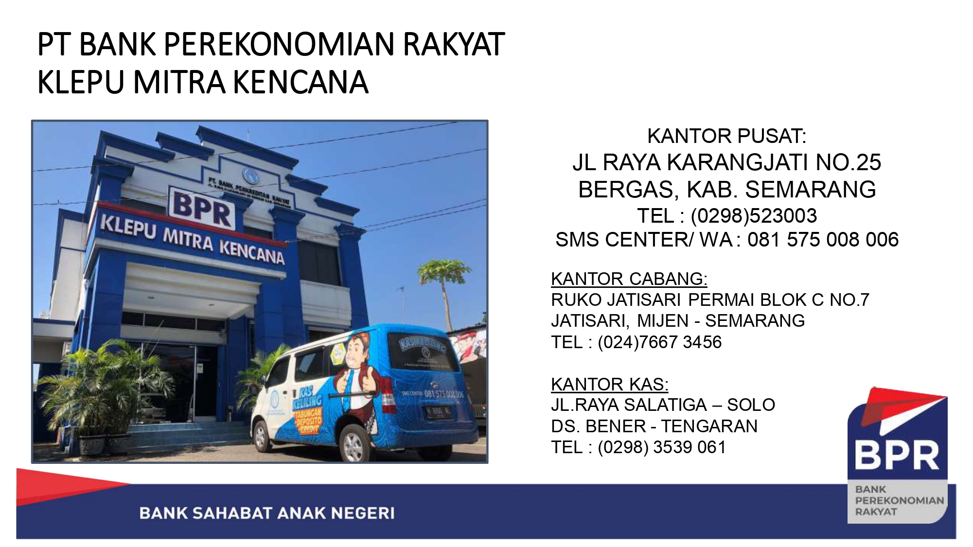 BPR KLEPU MITRA KENCANA (Perusahaan) yang didirikan pada tahun 1997, di Kabupaten Semarang dengan akte Notaris Angeliquie Tedjajuwana SH. No. 13 tanggal 13 Januari 1997.